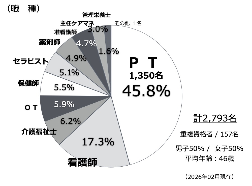 看護師 510名 主任ケアマネ 88名